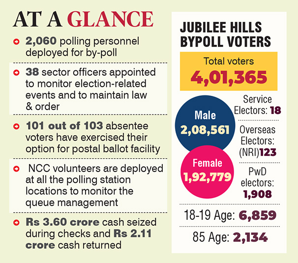 Ahead of the Jubilee Hills by-election on November 11, authorities have ramped up security and logistical arrangements. Drones will monitor 130 locations covering 407 polling stations, while over 1,760 security personnel including paramilitary forces have been deployed.