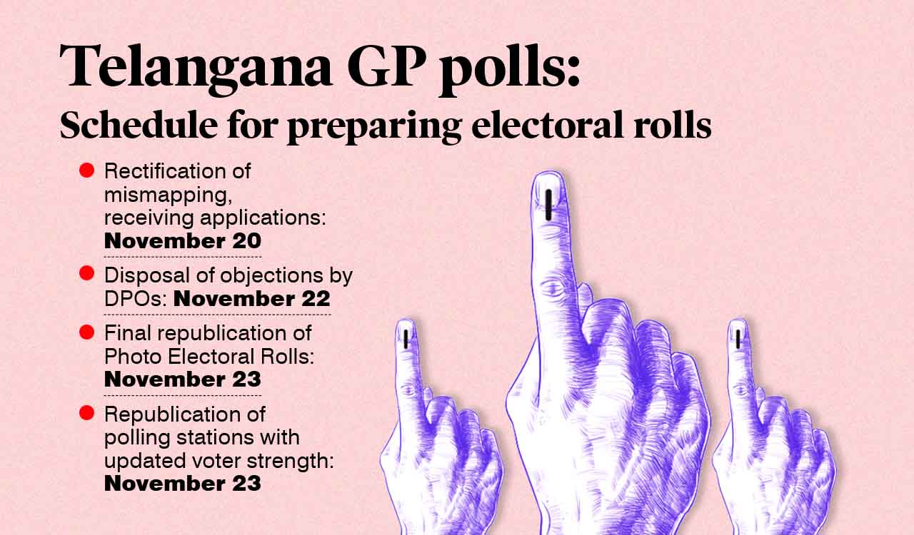 The Telangana State Election Commission has announced a detailed schedule for the preparation and republication of ward-wise photo electoral rolls ahead of the Gram Panchayat elections. District Panchayat Officers have been instructed to rectify voter mis-mapping and incorporate valid changes before final publication.